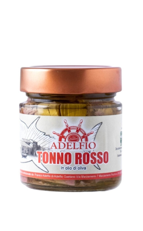 Der Tonno Rosso in Olio d’Oliva im Glas von Adelfio ist eine sizilianische Delikatesse von höchster Qualität. Hergestellt aus sorgfältig ausgewähltem Rotem Thunfisch (Tonno Rosso) und eingelegt in feinem Olivenöl, steht dieses Produkt für authentischen Geschmack und traditionelle Handwerkskunst. Der Thunfisch wird schonend verarbeitet, von Hand in Gläser gefüllt und ausschließlich mit Olivenöl konserviert. Das Ergebnis ist ein festes, saftiges Fleisch, ein intensiver, zugleich eleganter Geschmack und eine außergewöhnlich zarte Textur. Die Glasverpackung (Vaso) bewahrt Aroma und Qualität besonders rein. Ideal für die mediterrane Küche, pur genossen, zu Salaten, Pasta, Antipasti oder auf geröstetem Brot.